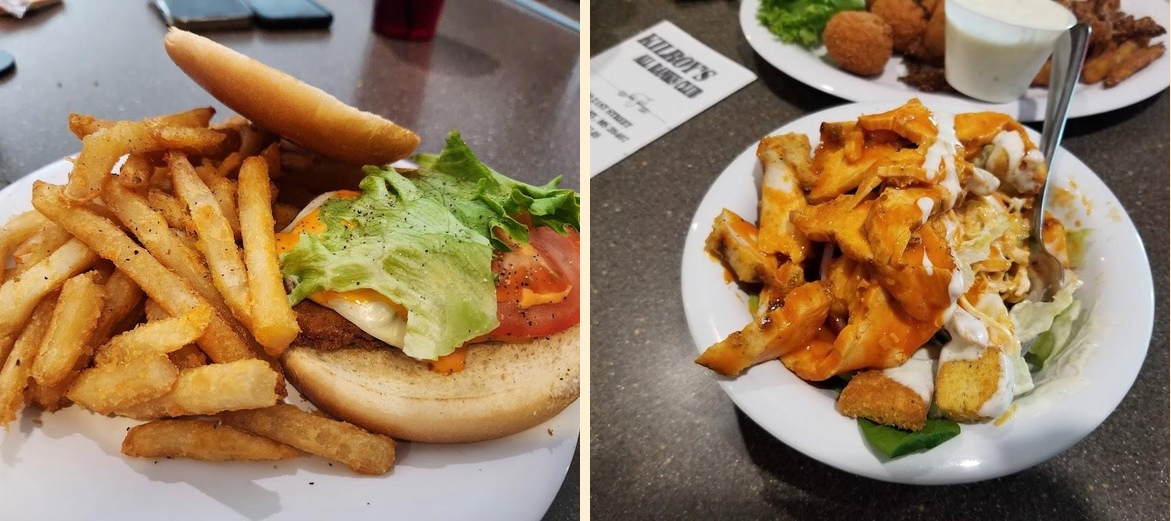 Camp Shelby offers a wide variety of dishes. You’ll find options like garden salads, appetizers, burgers, sandwiches, wraps, and daily lunch specials from Tuesday to Friday.